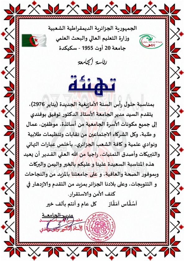 مشاركة السيد مدير الجامعة في فعاليات الاحتفال برأس السنة الأمازيغية -يناير- بولاية سكيكدة 11 جانفي 2026‎