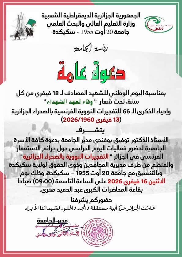 فضاء يضم التظاهرات العلمية و الثقافية الجامعية خلال السنة الاكاديمية 2025-2026
