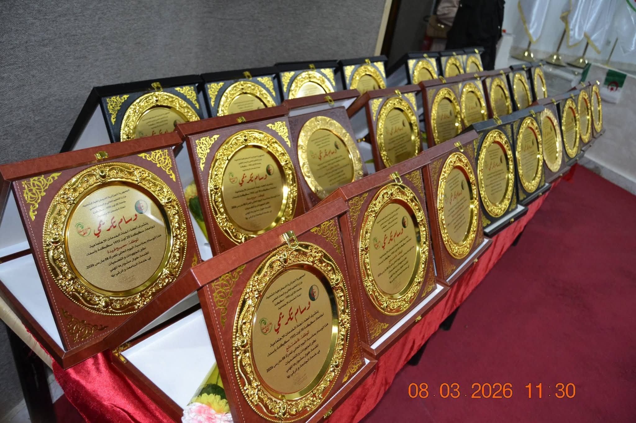 في أجواء مفعمة بالتقدير والاعتزاز، وبمناسبة اليوم العالمي للمرأة المصادف لـ 08 مارس من كل سنة، احتضنت قاعة المحاضرات الكبرى "عبد الحميد مهري" صبيحة اليوم الأحد 08 مارس 2026، احتفالية بهيجة نظمتها لجنة الخدمات الاجتماعية لجامعة سكيكدة ، تكريماً للعنصر النسوي بالأسرة الجامعية من أستاذات، موظفات وعاملات