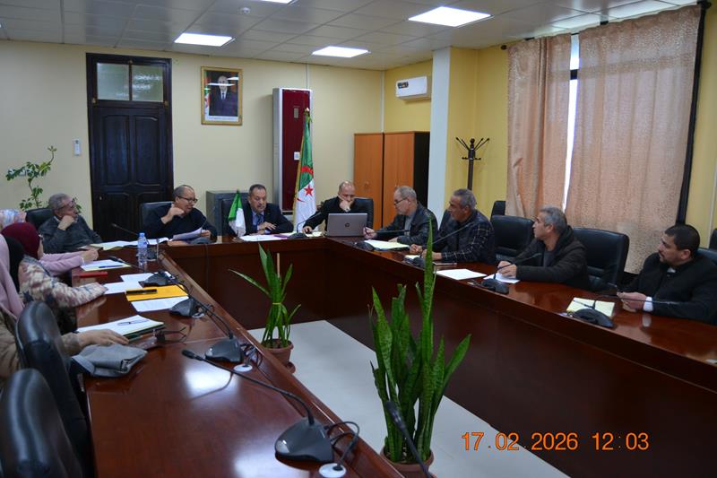 - أشرف السيد مدير جامعة 20 أوت 1955 سكيكدة، البروفيسور بوفندي توفيق، بصفته رئيساً للجنة السكن للمدينة الجامعية سكيكدة، مساء اليوم الثلاثاء 17 فيفري 2026 بقاعة الاجتماعات لرئاسة الجامعة، على عقد اجتماع تنسيقي موسع ضمّ كل من السيدات و السادة : مدير المدرسة العليا لأساتذة التعليم التكنولوجي عزابة ، نائب المدير المكلف بالتنمية والاستشراف والتوجيه ، مسؤولي مكاتب السكن بالجامعة والمدرسة العليا لأساتذة التعليم التكنولوجي عزابة ، مديرية الخدمات الجامعية سكيكدة و جامعة التكوين المتواصل (فرع سكيكدة) ، و ممثلي الشركاء الاجتماعيين عن كل من نقابات : SNAPAP ,UGTA , SNAPES