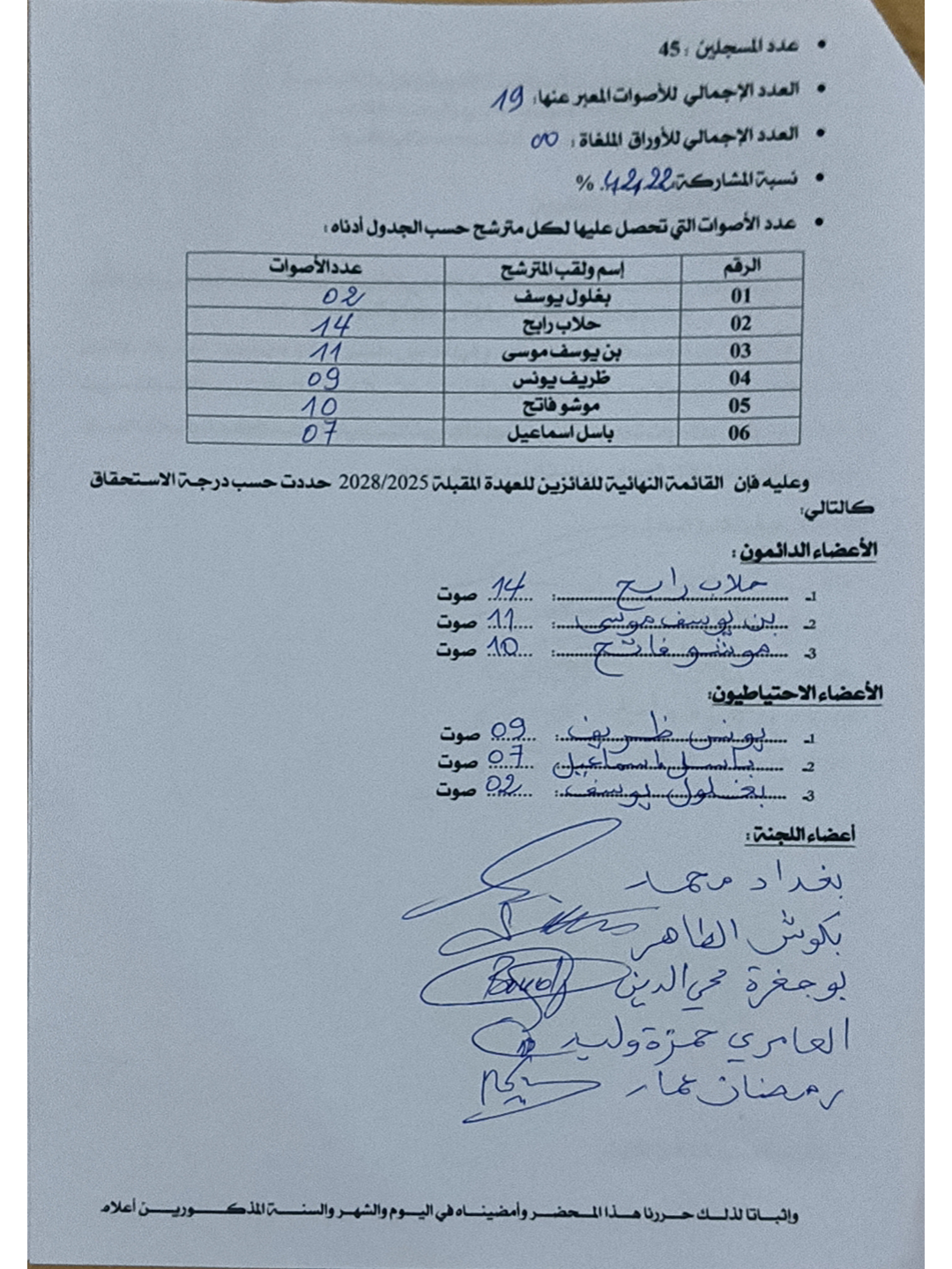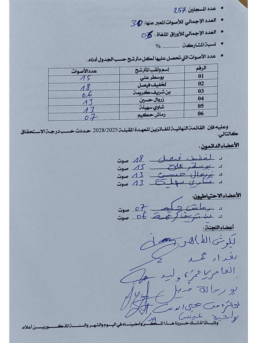 النتائج الأولية لإنتخابات تجديد عضوية اللجان الإدارية المتساوية الأعضاء للعهدة 2025-2028