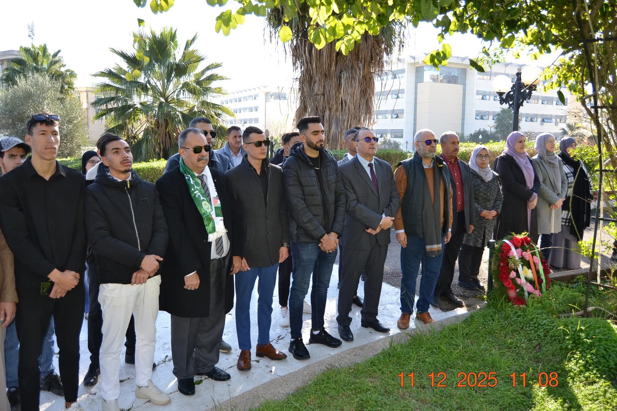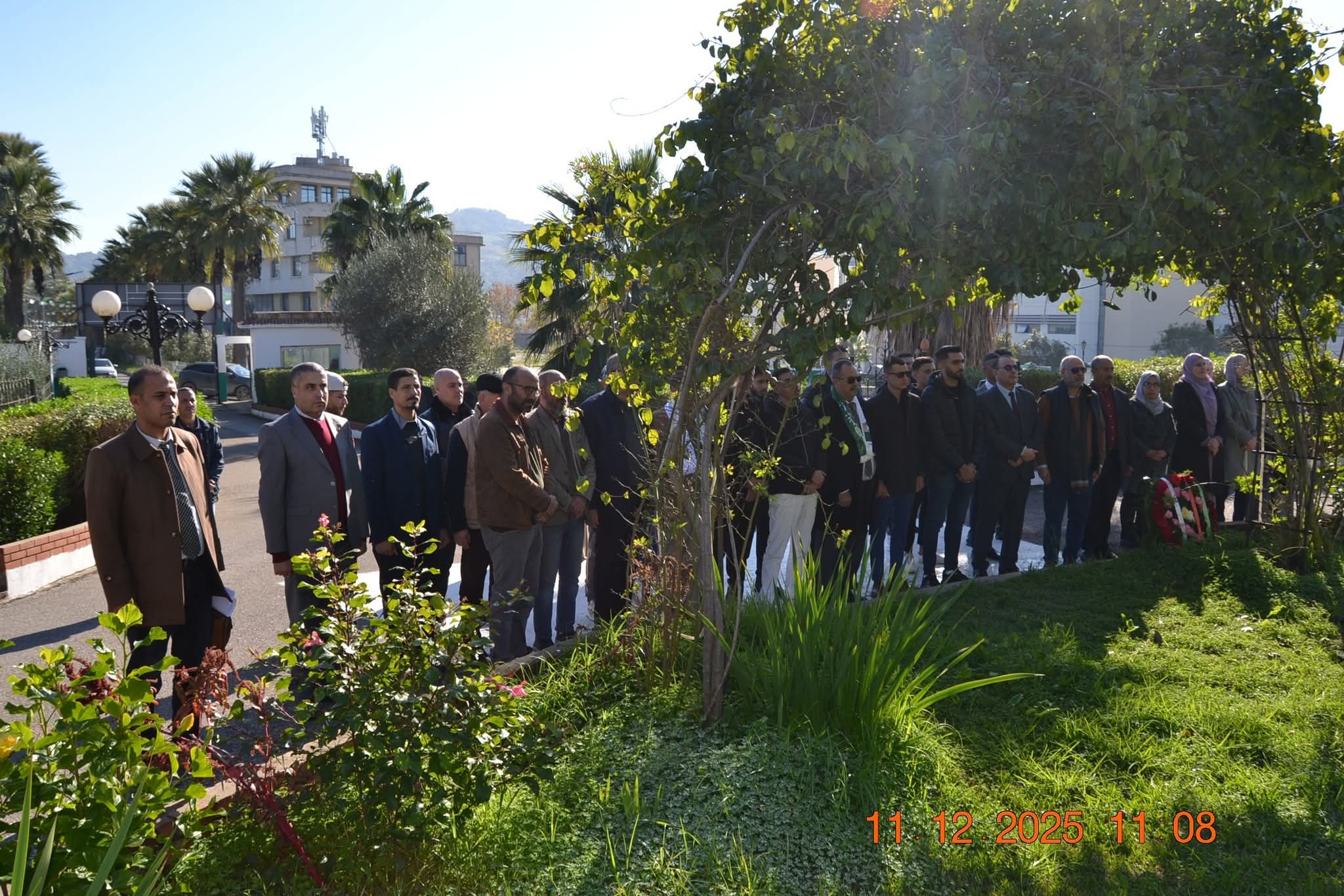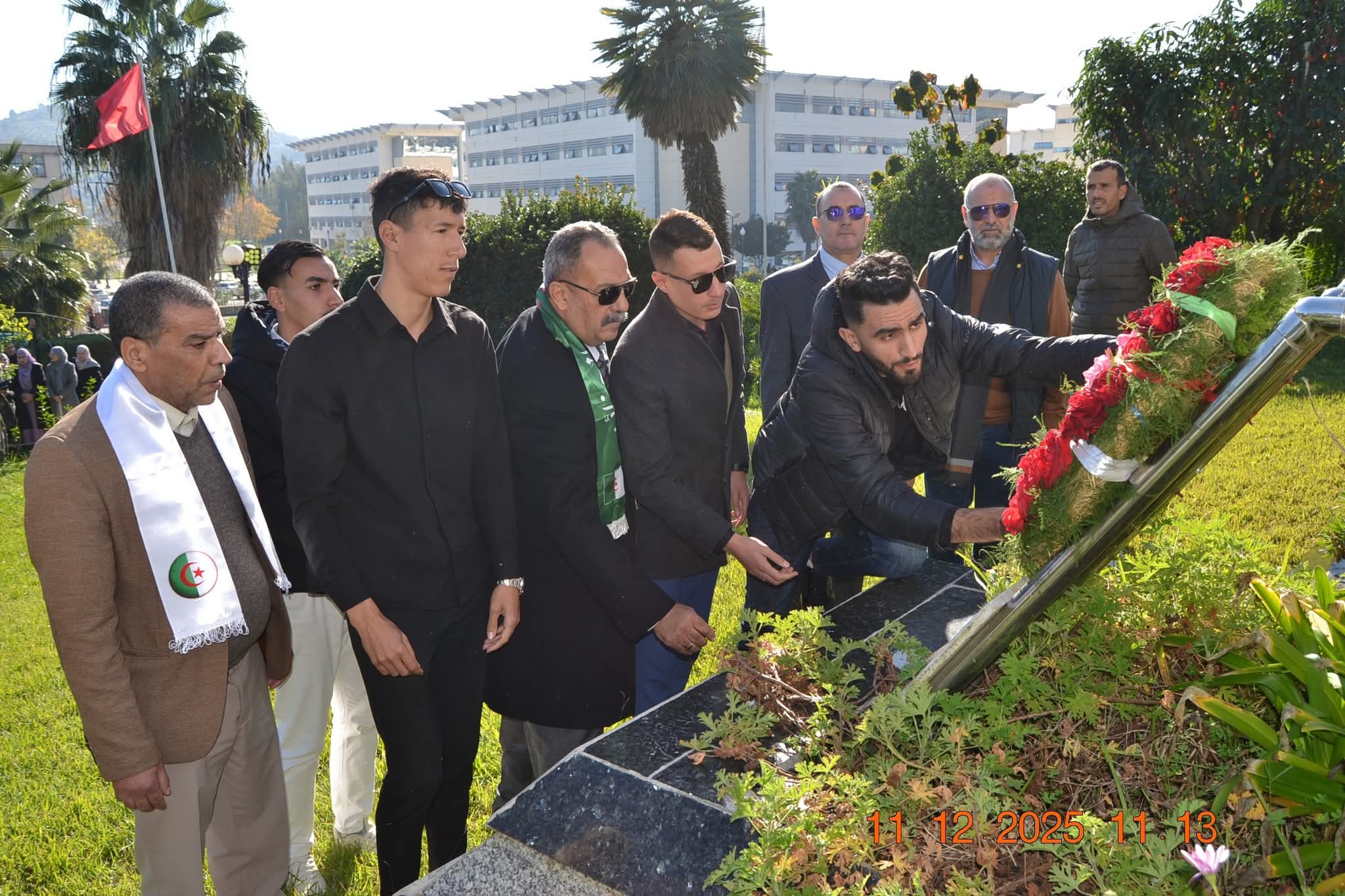 🔴 في إطار الإحتفالات المخلدة للذكرى  (65) لمظاهرات الشعب المصادف للحادي عشر من شهر ديسمبر من كل سنة ، أشرف  صبيحة يوم الخميس11 ديسمبر 2025 على الساعة 11:00 صباحا ، السيد مدير جامعة 20 أوت 1955 سكيكدة البروفيسورتوفيق بوفندي على مراسيم إحياء هذه الذكــرى رفقة كل من الطاقم الإداري للجامعة ، ومختلف الشركاء الإجتماعيين بالجامعة من النقابات و التنظيمات طلابية و النوادي العلمية المعتمدة بالجامعة ، و ثلة من الأساتذة و الموظفين والطلبة ، من خلال الوقوف تحية وإجلال للنشيد الوطني الجزائري و قراءة الفاتحة ووضع إكليل من الورود بالنصب التذكاري للجامعة ترحما على أرواح شهدائنا الأبرار.
