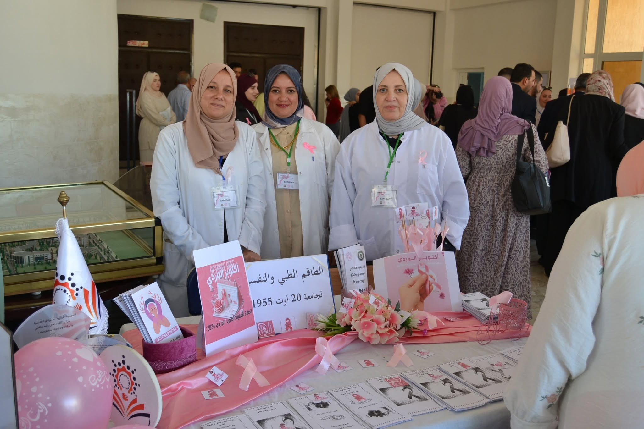 في إطار فعاليات شهر أكتوبر الوردي، و مواصلة لبرنامج الحملات التحسيسية حول سرطان الثدي بمختلف مرافق جامعة 20 أوت 1955 سكيكدة  ، نظمت صبيحة يوم الإثنين 20 أكتوبر 2025 ،  على مستوى قاعة المحاضرات الكبرى عبد الحميد مهري وحدة الطب الوقائ بالجامعة بالتنسيق مع نادي bio-mind technova ، الحركة الوطنية للطلبة الجزائرين المكتب الولائي سكيكدة و بمشاركة المؤسسة العمومية الإستشفائية الإخوة ساعد قرمش و مؤسسة سليمة سواكري للعمل الخيري وثلة من الأطباء المختصين في مجال التوليد و أمراض النساء ، و التغدية وأخصائين نفسانين ، فعاليات الحملة التحسيسية و التوعوية حول خطرسرطان الثدي وطرق الوقاية منه وأهمية الكشف المبكر .
