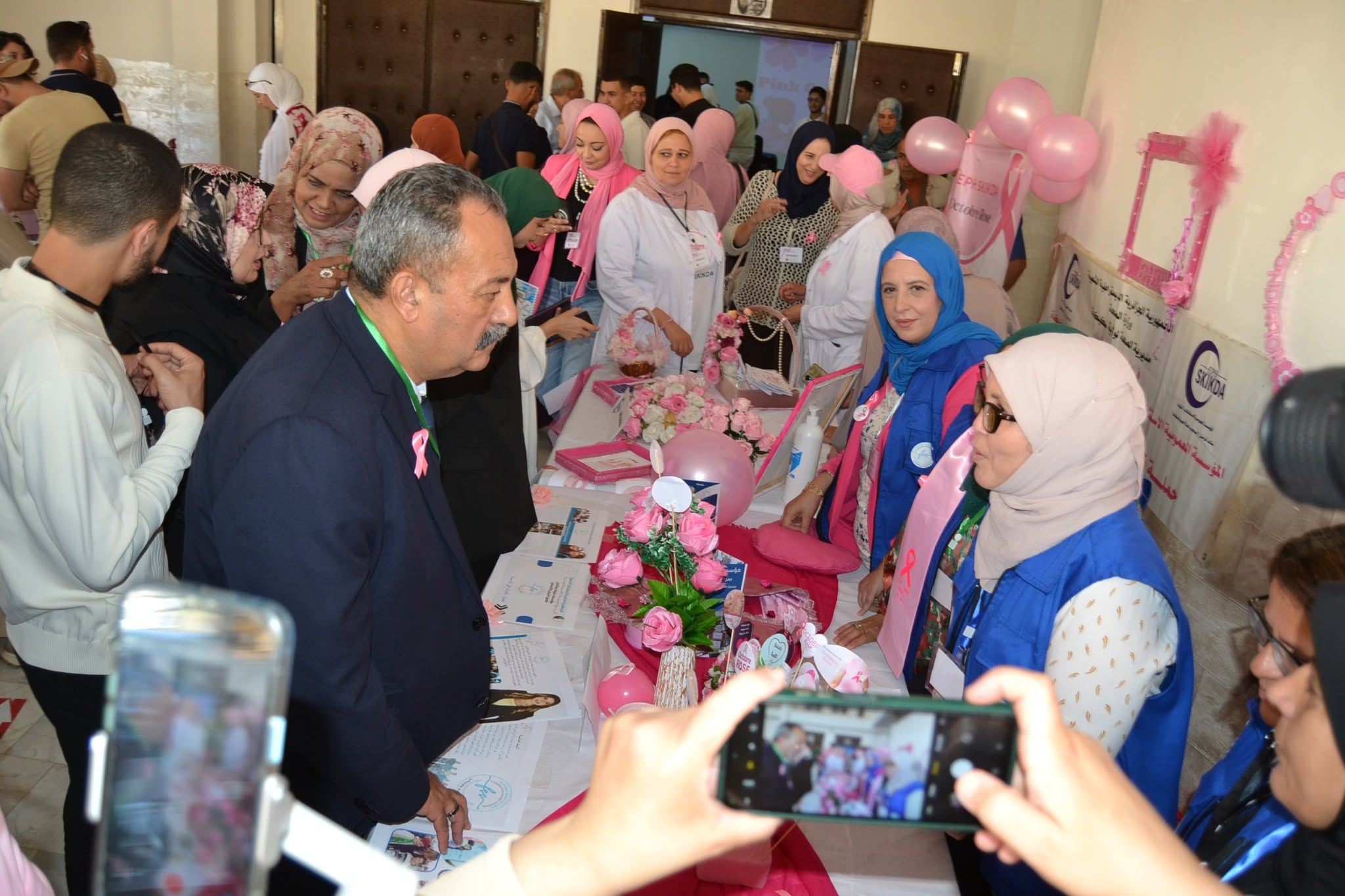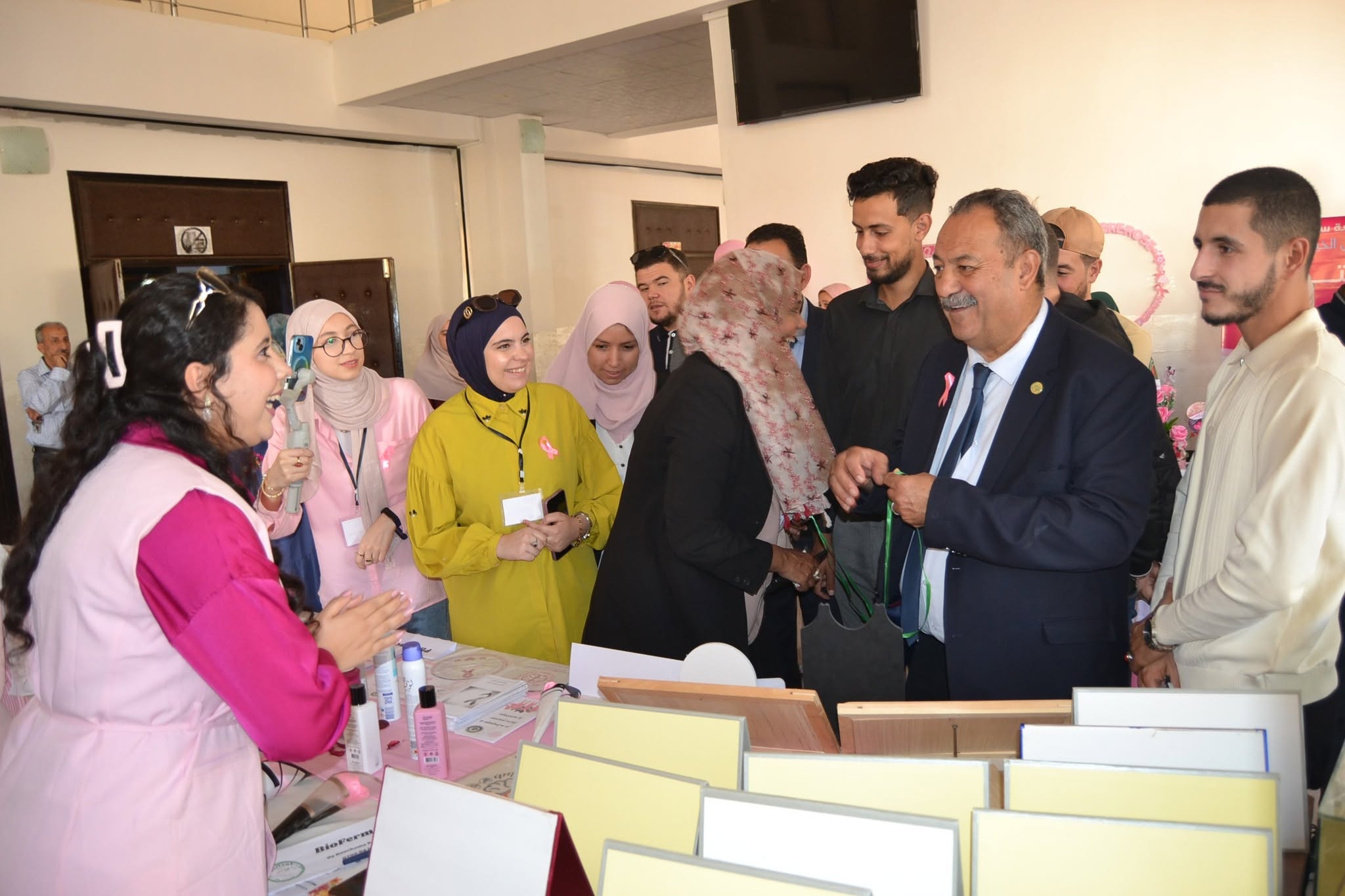 إنطلقت فعاليات اليوم التحسيسي بسرطان الثدي بزيارة مدير الجامعة البرفيسور توفيق بوفندي لمعرض و ملصقات و صور الحملة التحسيسية وكذا الإستماع لنصائح الأطباء بالإضافة لمعرض مخصص للأغدية الطبيعية والصحية من طرف حرفيات و أصحاب مؤسسات ناشىة ومصغرة ، السيد مدير الجامعة