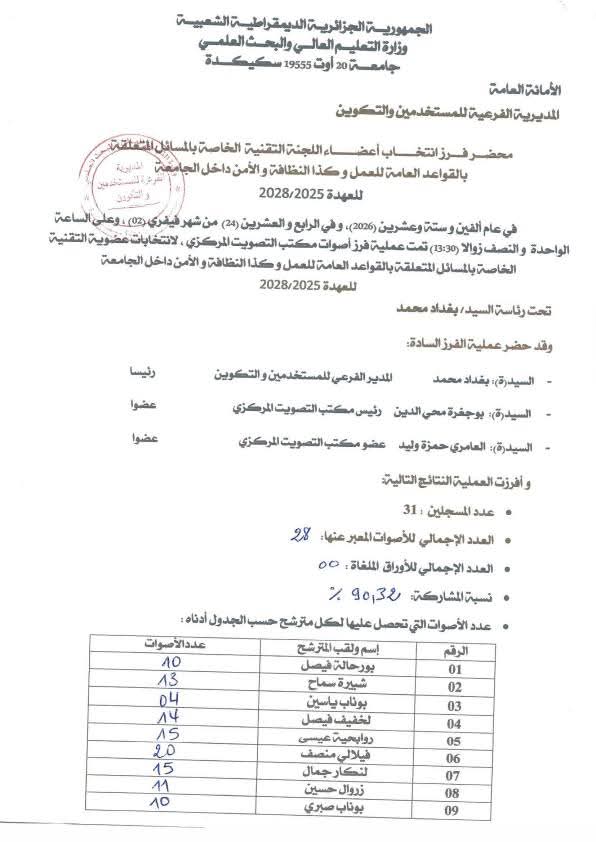 جامعة- سكيكدة ص ب 26 طريق الحدائق - سكيكدة . الجزائر 21000