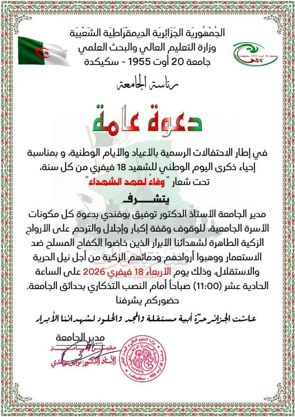 دمتم دخرا وفخرا للعلم والمعرفة وللجامعة الجزائرية