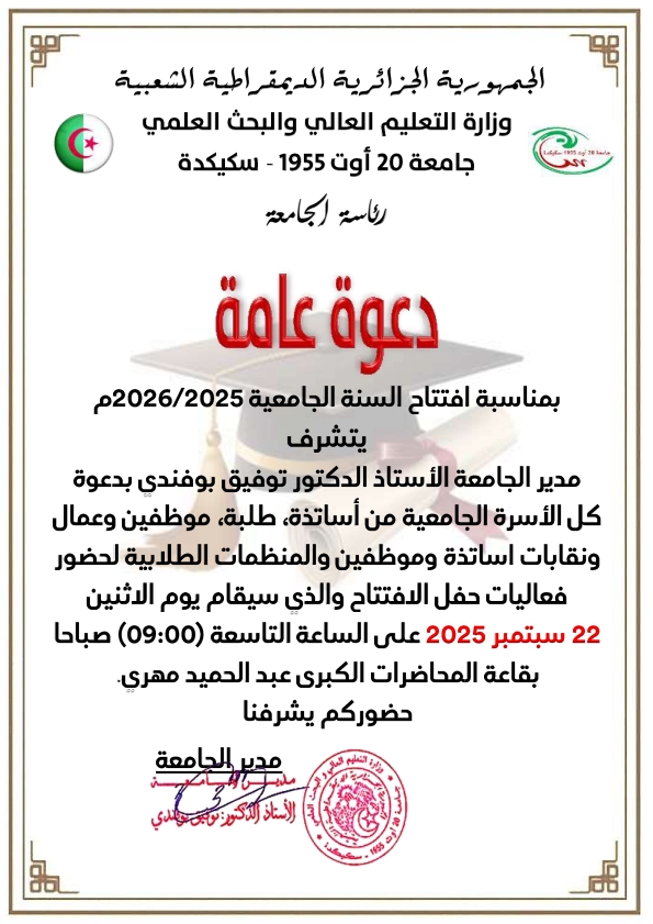 فضاء يضم كل المنشورات و المجلات العلمية لجامعة سكيكدة