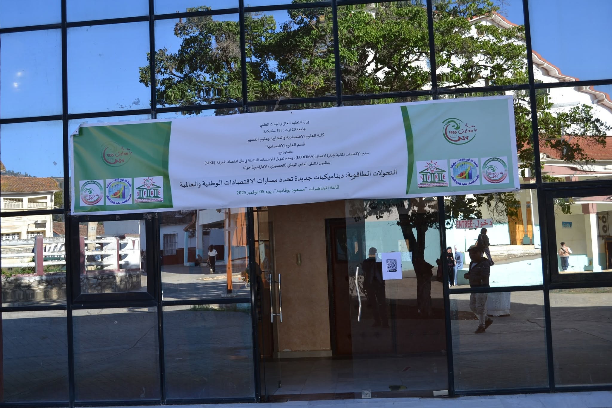 في إطار مختلف الأنشطة العلمية المسطرة من طرف جامعة سكيكدة ، نظمت صباح يوم الأربعاء 05 نوفمبر 2025 بقاعة المحاضرات مجمع مسعود بوقادوم ، كلية العلوم الإقتصادية و التجارية و علوم التسيير قسم العلوم الإقتصادية بالتنسيق مع مخبر تمويل المؤسسات الناشئة في ظل إقتصاد المعرفة و مخبر الإقتصاد ، المالية وإدارة الأعمال ، فعاليات الملتقى الوطني الأول حول التحولات الطاقوية - ديناميكيات جديدة تحدد مسارات الإقتصادات الوطنية و العالمية - بمشاركة أساتذة ومختصين من مختلف جامعات الوطن بمداخلات حضورية وعبر تقنية التحاضر عن بعد ، وقد أشرف على إفتتاح أشغال الملتقى عميد كلية العلوم الإقتصادية و التجارية وعلوم التسيير أ.د كيموش بلال نيابة عن السيد مدير الجامعة البرفيسور بوفندي توفيق رفقة رئيسة الملتقى د. أسماء قرفي .