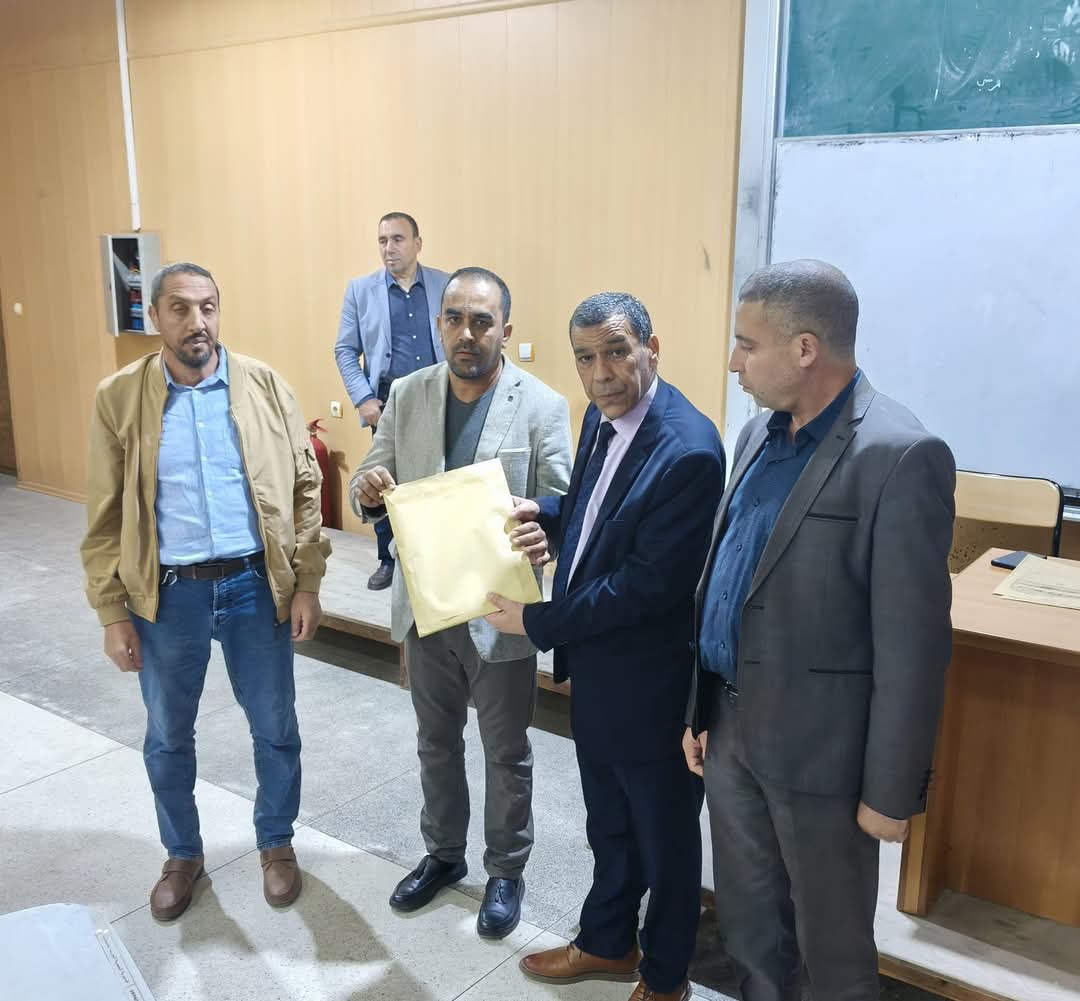 باللصور جانب من  اليوم الثاني لفعاليات  الإمتحانات المهنية لمختلف الرتب والإدارات دورة  14 و 15 نوفمبر 2025 على مستوى كلية الحقوق والعلوم السياسية  بجامعة سكيكدة تحت إشراف السيد مدير الجامعة البرفيسو بوفندي توفيق رفقة السيد الأمين العام للجامعة بصفته رئيسا لمركز المسابقات والإمتحانات والفحوص المهنية رشيد شخدنو العملية تمت مجرياتها في ظروف تنظيمية جد محكمة .