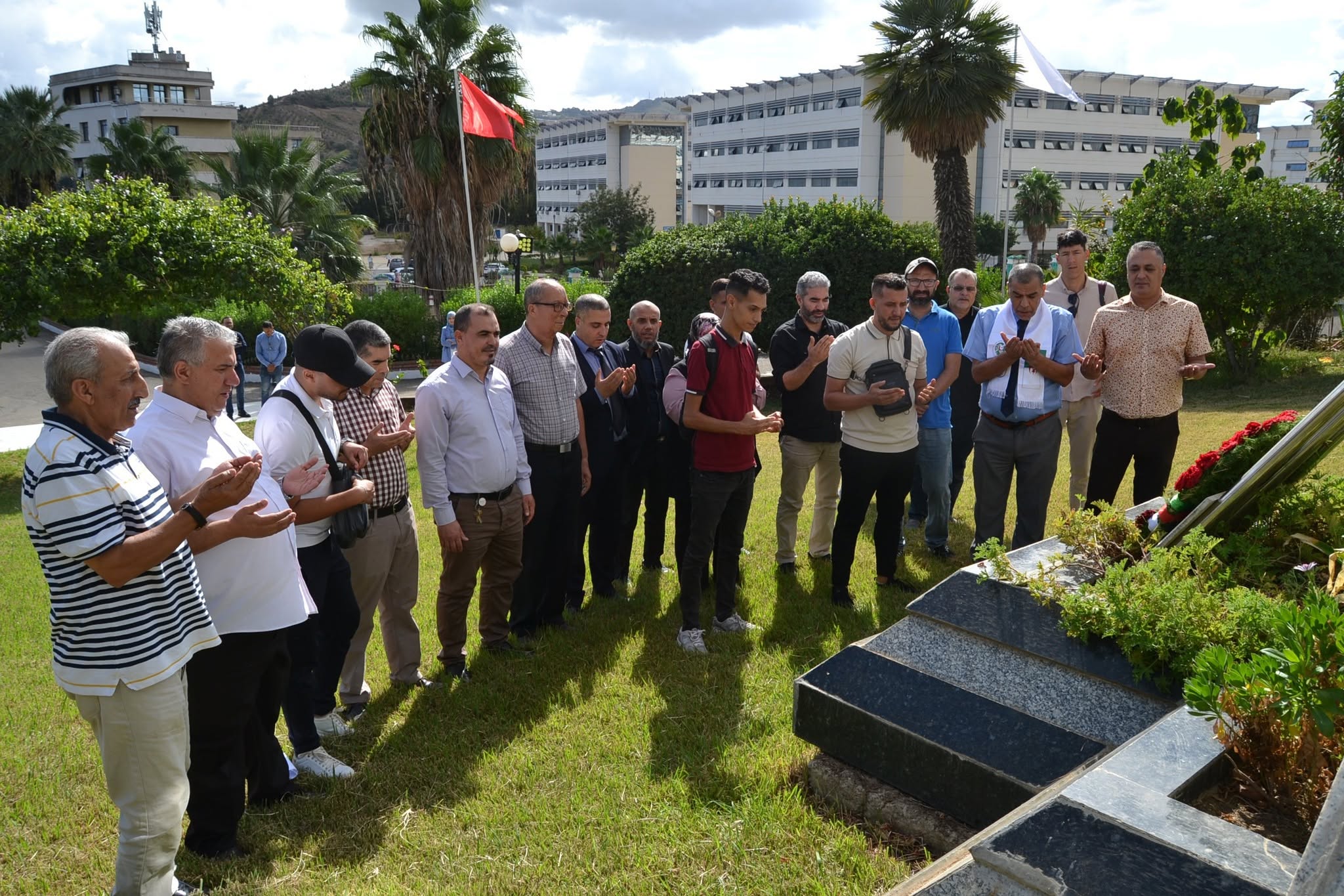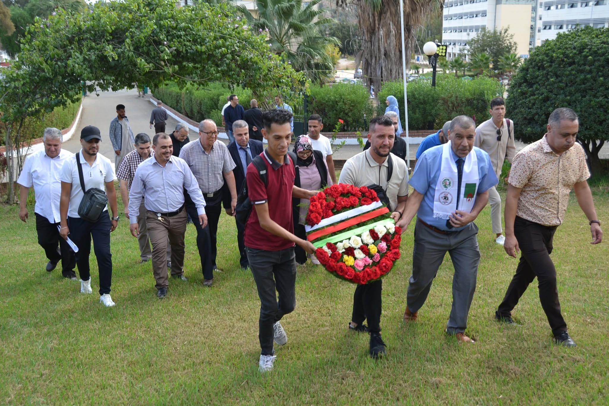 Under the slogan "Cohesion and Commitment," on Thursday morning, October 16, 2025, the University Secretary-General, on behalf of the University President, Professor Tawfiq Boufandi, accompanied by the University's administrative staff, representatives of student unions, organizations, and clubs accredited at the University, observed a minute of silence to remember the souls of our martyrs. This was to mark the 64th anniversary of National Migration Day, 1961-2025, in memory of the martyrs of the October 17, 1961 massacres.
